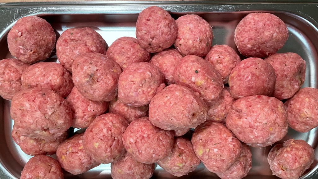 Als erstes das Hackfleisch mit Paniermehl, Ei und Senf gut vermengen. Mit Salz und Pfeffer abschmecken und mit feuchten Händen aus dem Hackfleisch kleine Kugeln rollen.