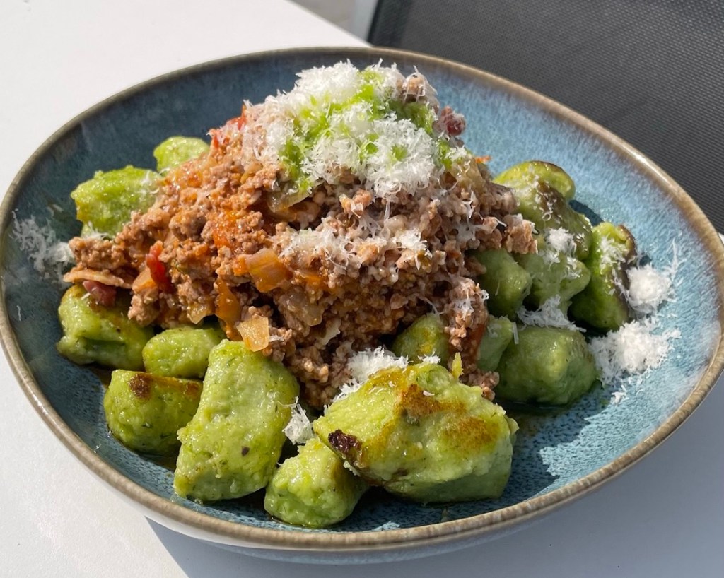 Wer es lieber fleischig mag – auch mit einer Bolognese schmecken die würzigen Gnocchi sehr lecker!