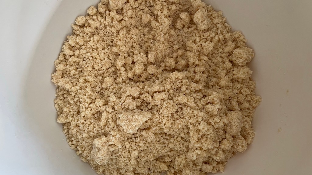 Mehl mit braunem Zucker und Salz in einer Schüssel mischen. Butter in Würfeln zugeben. Mit den Händen kurz zu einem krümeligen Teig verkneten.